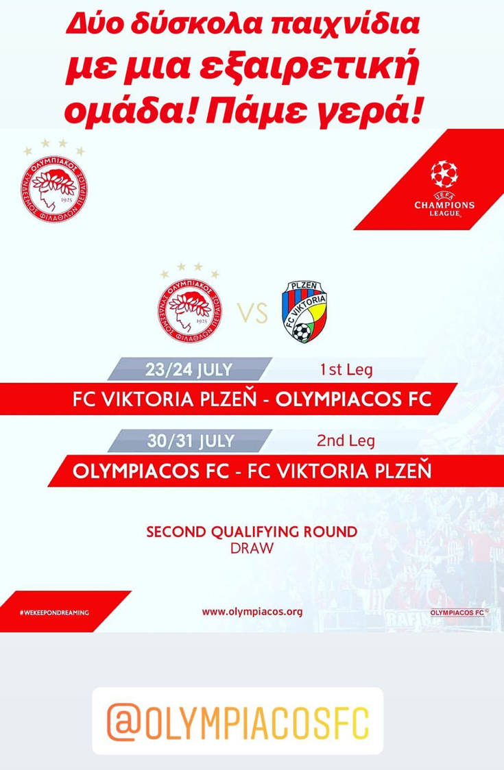 Ο Κώστας Καραπαπάς ανέβασε ποστάρισμα στο Instagram του με αφορμή την κλήρωση του Ολυμπιακού με την Βικτόρια Πλζεν στην διοργάνωση του Champions League.