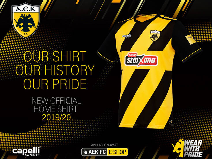 Η νέα φανέλα είναι άμεση διαθέσιμη από τα καταστήματα της ομάδας μας στο ισόγειο των κεντρικών γραφείων της ΠΑΕ ΑΕΚ (Ολύμπου & Πάτμου, Μαρούσι) και το ΑΕΚ Concept Store στη Νέα Φιλαδέλφεια (Λεωφ. Δεκελείας 140), από επιλεγμένο δίκτυο συνεργατών και φυσικά από το AEK FC E-SHOP ΕΔΩ