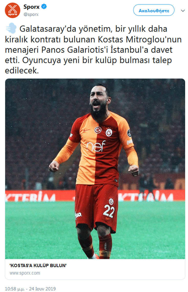 Μισή σεζόν φαίνεται ότι θα έχει διάρκεια η καριέρα του Κώστα Μήτρογλου στα Γαλατάσαραϊ, σύμφωνα με όσα πηγάζουν από την Τουρκία. Ο 31χρονος επιθετικός υπέγραψε τον χειμώνα για 1,5 χρόνο δανεισμού στον σύλλογο της Κωνσταντινούπολης, αλλά φαίνεται ότι αυτός θα τερματιστεί αρκετά νωρίτερα.