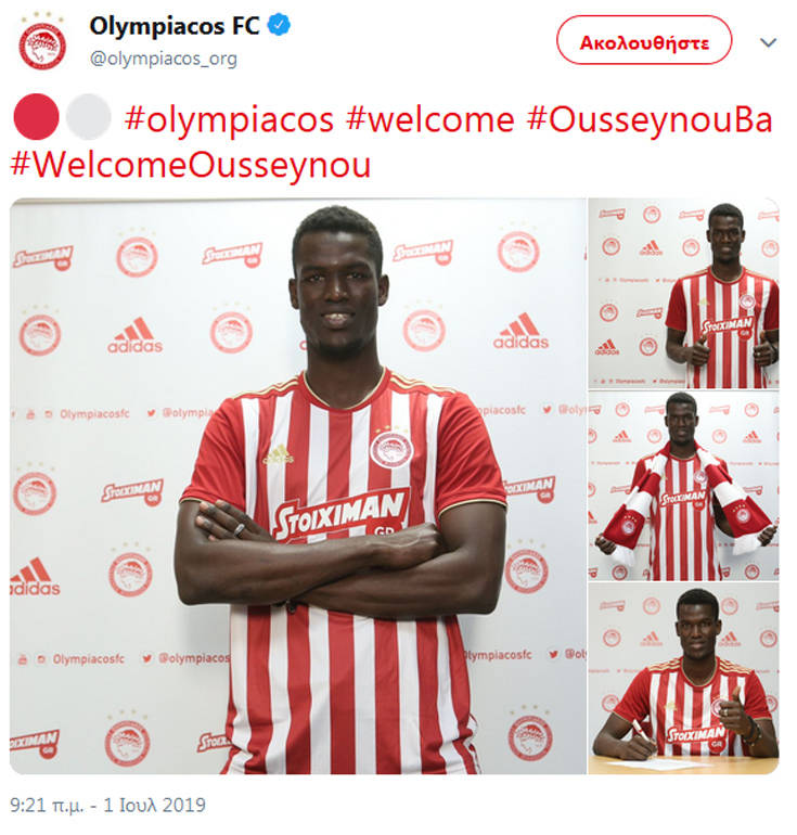 Ο Ουσεϊνού Μπα ανακοινώθηκε από τον Ολυμπιακό, που δημοσίευσε τις πρώτες του φωτογραφίες με τη φανέλα της ομάδας.