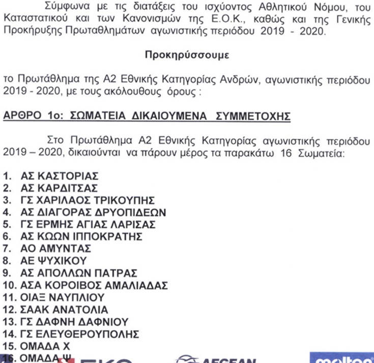 Βέβαια, σύμφωνα με το έγγραφο που φέρνει στη δημοσιότητα η ιστοσελίδα gazzetta.gr, υπάρχουν δύο κενές θέσεις με «Χ» και «Ψ», καθώς αποφασίστηκε το πρωτάθλημα να διεξαχθεί με 16 ομάδες αντί για 14.