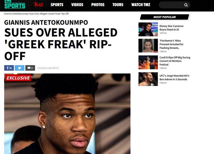 Στα δικαστήρια με έναν καλλιτέχνη που έχει αποφασίσει να πουλάει μπλούζες με το όνομα του «Greek Freak» βρίσκεται ο Γιάννης Αντετοκούνμπο.