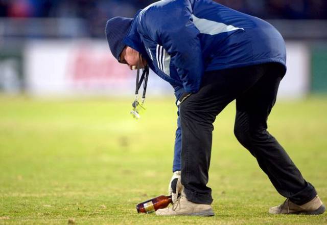 Αυτό συνέβη καθώς οπαδοί των γηπεδούχων μετά από γκολ που δέχτηκε η ομάδα τους άρχισαν να πετούν στον αγωνιστικό χώρο διάφορα αντικείμενα, ανάμεσά τους και γυάλινα μπουκάλια μπίρας!