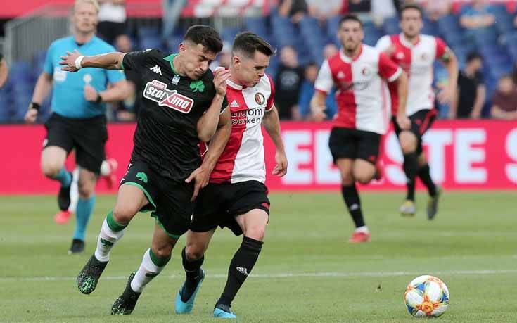 Πρώτο φιλικό για τον Παναθηναϊκό στην φετινή προετοιμασία απέναντι σε έναν πολύ δυνατό και πιο έτοιμο αντίπαλο, όπως είναι η Φέγενορντ. Ο Γιώργος Δώνης επέλεξε το 4-3-3 για την ομάδα του, σύστημα που δουλεύει περισσότερο αυτό το καλοκαίρι. Ο Διούδης ξεκίνησε κάτω από τα δοκάρια. Αριστερό μπακ ο Ινσούα και δεξί ο Γιόχανσον. Ο Πούγγουρας με τον Κολοβέτσιο στο κέντρο της άμυνας. Ο Κουρμπέλης σε ρόλο αμυντικού μέσου, έχοντας μπροστά του Δώνη και Μπουζούκη. Στην επίθεση ο Χατζηγιοβάνης από δεξιά και ο Χατζηθεοδωρίδης από αριστερά με… ανάποδα πόδια πλαισίωναν τον Μακέντα στην κορυφή.