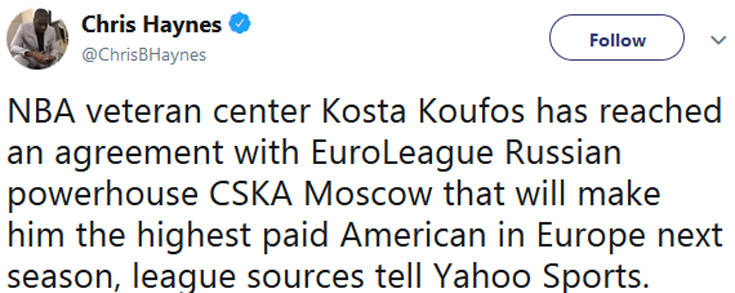 Ο Έλληνας σέντερ ήταν free agent, έψαχνε συμβόλαιο στο NBA, αλλά δεν μπορούσε να αρνηθεί την πρόταση της ΤΣΣΚΑ Μόσχας.