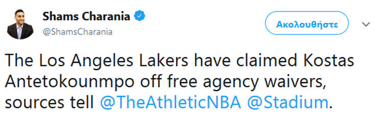 Σύμφωνα με τον Σαμς Τσαράνια ο 21χρονος πάουερ φόργουορντ θα αφήσει το Ντάλας και τους Μάβερικς για να γίνει «λιμνάνθρωπος». Σύμφωνα με όσα έχουν γίνει γνωστά, η συμφωνία θα αφορά ένα two way contract, κάτι που σημαίνει ότι ο νεαρός Αντετοκούνμπο θα βρεθεί στην G-League, ενώ θα είναι διαθέσιμος για να συμβάλει στις προσπάθειες και της μεγάλης ομάδας.