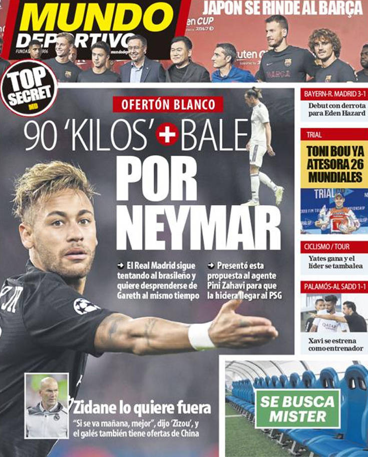Σύμφωνα με τη Mundo Deportivo, η οποία ειδικεύεται στο ρεπορτάζ της Μπαρτσελόνα, αλλά στη συγκεκριμένη περίπτωση οι πληροφορίες… ακουμπούν και τους «μπλαουγκράνα», που ενδιαφέρονται για τον παίκτη, οι Μαδριλένοι προσφέρουν 90 εκατομμύρια ευρώ και τον Γκάρεθ Μπέιλ σαν αντάλλαγμα στους Παριζιάνους.