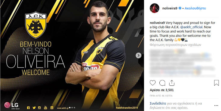«Τώρα είναι ώρα να συγκεντρωθώ και να δουλέψω σκληρά για να πετύχουμε τους στόχους μας. Σας ευχαριστώ επίσης για το καλωσόρισμα στην οικογένεια της ΑΕΚ», πρόσθεσε ο Ολιβέιρα.