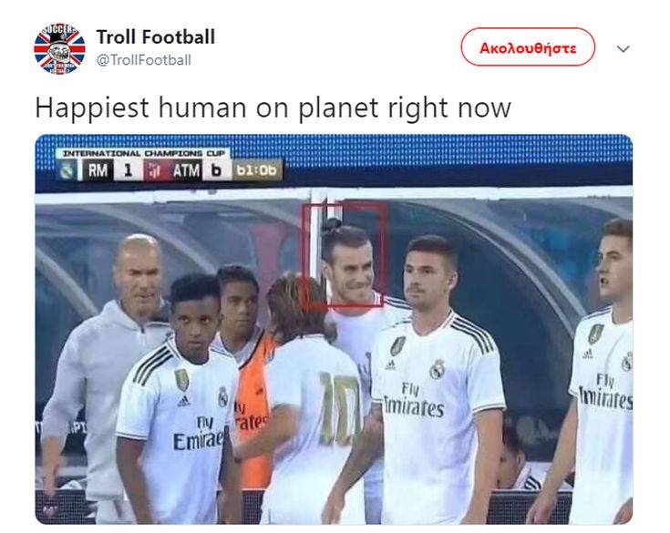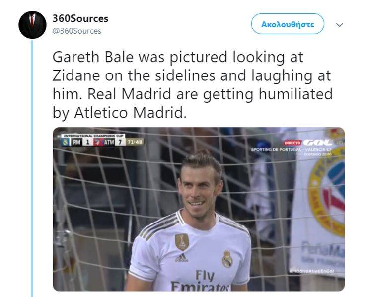 Η Ρεάλ Μαδρίτης γνώρισε τον διασυρμό (3-7) από τη μισητή συμπολίτισσα Ατλέτικο σε φιλικό παιχνίδι που έγινε στο Νιου Τζέρσι, με το σκορ μάλιστα σε δύο περιπτώσεις να είναι στα έξι γκολ διαφορά. Όμως, αυτό δεν φάνηκε να στεναχωρεί ιδιαίτερα τον Γκάρεθ Μπέιλ, τον οποίον η κάμερα έπιασε δύο φορές ιδιαίτερα χαμογελαστό.