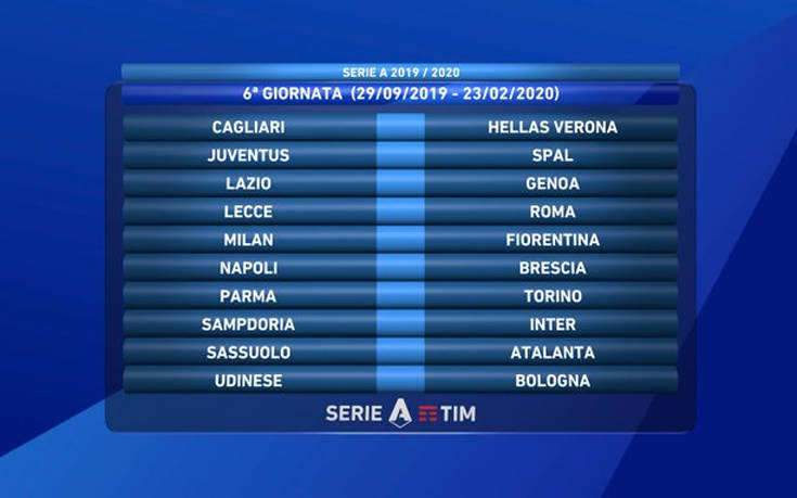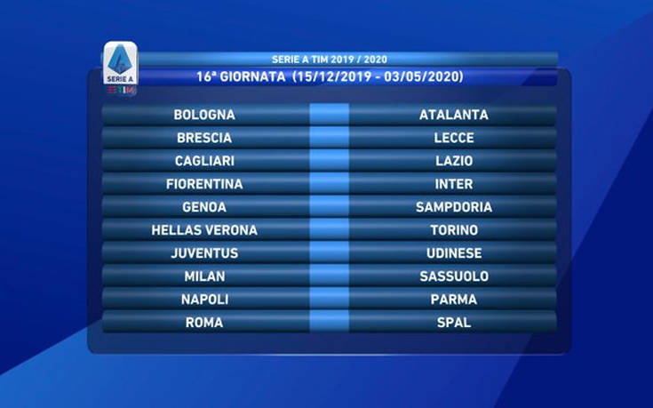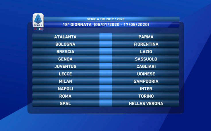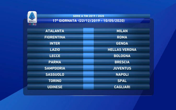 «Μπιανκονέρι» και «παρτενοπέι» θα αναμετρηθούν τη 2η αγωνιστική, ενώ η ρεβάνς στην Καμπανία, στην επιστροφή του Σάρι εκεί, θα γίνει στις 26 Ιανουαρίου. Την ίδια ημέρα θα πραγματοποιηθεί και το μεγάλο ντέρμπι της Ρώμης, με γηπεδούχο τη Λάτσιο.