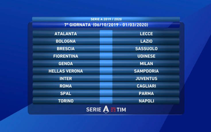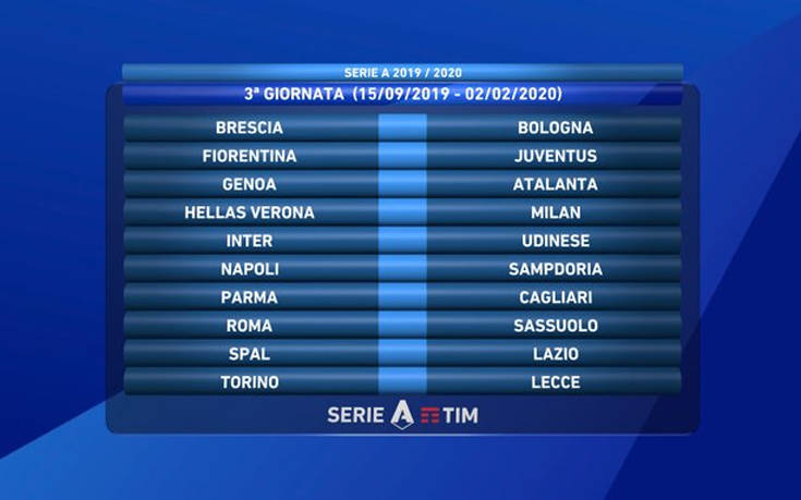 Όσο για το ντέρμπι του Μιλάνου, αυτό θα πραγματοποιηθεί την 4η αγωνιστική, με τυπικά γηπεδούχο τους «ροσονέρι». Τέλος, ο Κόντε θα έρθει αντιμέτωπος για πρώτη φορά με τη Γιουβέντους την 7η αγωνιστική, στο πρώτο Derby d’Italia της σεζόν.