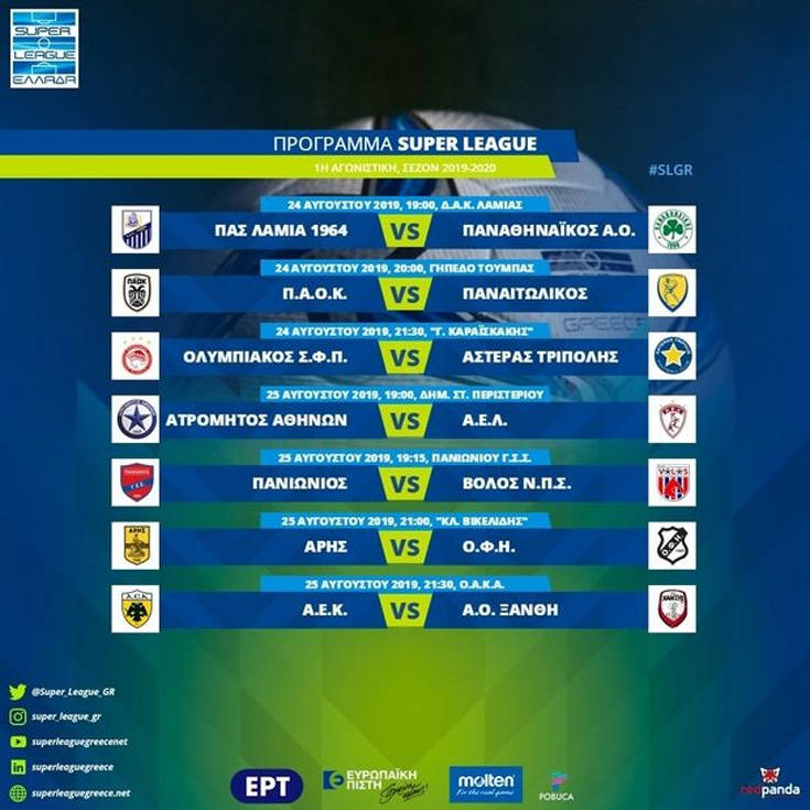 Πρεμιέρα κάνει το Σάββατο 24 Αυγούστου η Super League 1 με την αναμέτρηση της Λαμίας με τον Παναθηναϊκό στις 19:00 να ανοίγει την φετινή αυλαία.