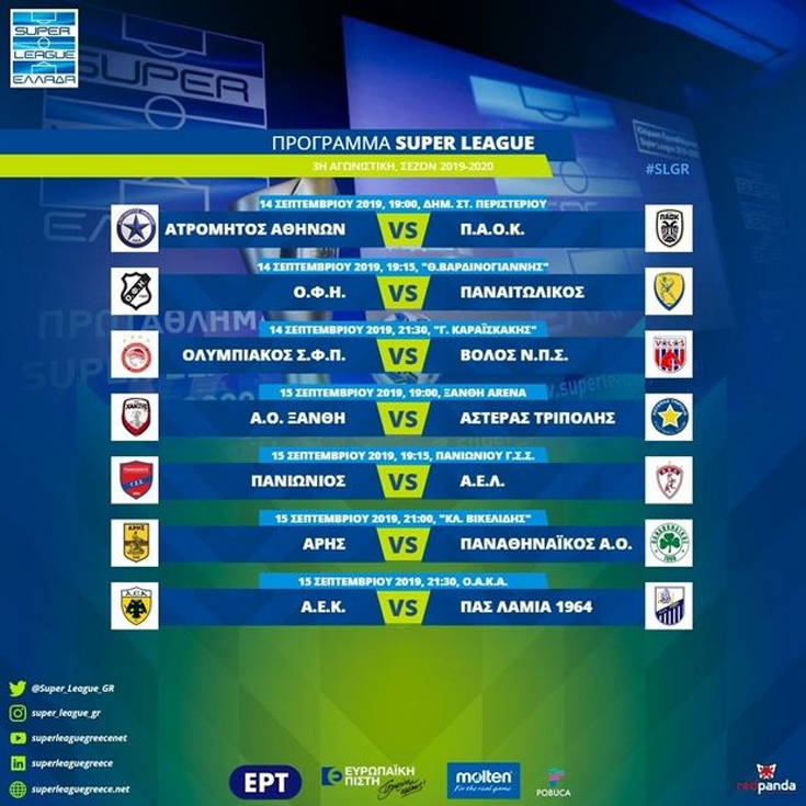Όσον αφορά τώρα την τρίτη αγωνιστική, τα παιχνίδια με ενδιαφέρον είναι Ατρόμητος – ΠΑΟΚ (14/09, 19:00) και Άρης – Παναθηναϊκός (15/09, 21:00).