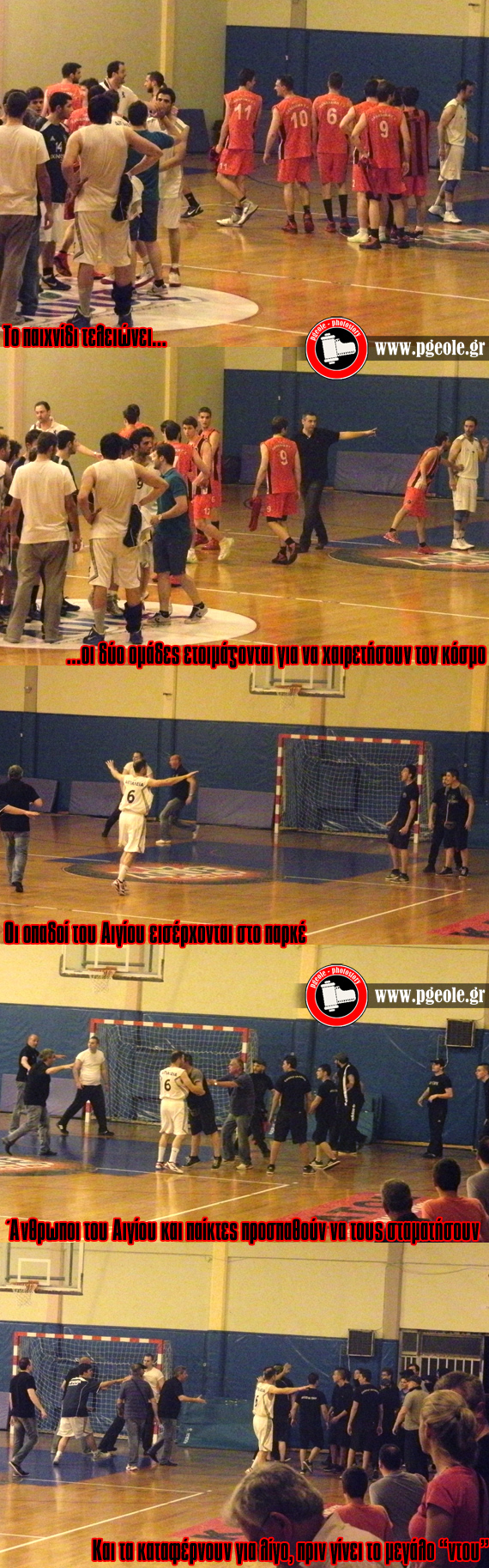 Τα αντικείμενα έπεφταν βροχή, έγινε ντου στον αγωνιστικό χώρο και όπως χαρακτηριστικά γράφει το «pgeole.gr» έγινε πλιάτσικο από τους φίλους του Παναιγιάλειου, οι οποίοι έκλεβαν ό,τι έβρισκαν μπροστά τους.