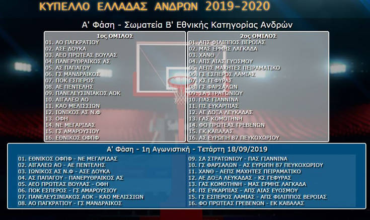 Το άλλο σίγουρο ζευγάρι στους «8» είναι το Περιστέρι-Ήφαιστος Λήμνου, ενώ η ΑΕΚ θα μάθει επίσης τον αντίπαλό της από τις διασταυρώσεις που θα προκύψουν κατά τη διάρκεια της διοργάνωσης.