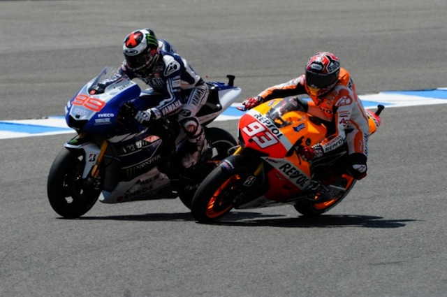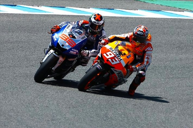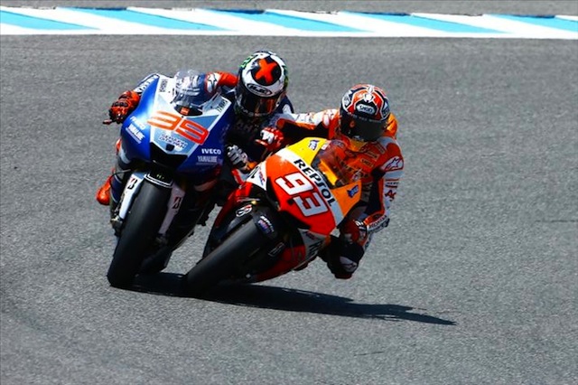 Ο Lorenzo δεν έχει πού να πάει και πέφτει επάνω του. Στη συνέχεια ανακτά τον έλεγχο της μοτοσυκλέτας του και απλά παρακολουθεί τον Marquez να απομακρύνεται προς τη γραμμή του τερματισμού…