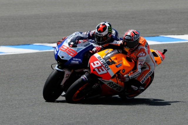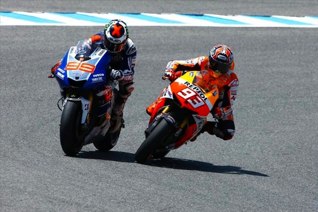 Σε επανάληψη, με διαφορά μερικών μέτρων μόνο, της προσπέρασης του Rossi στον Gibernau, στην ίδια πίστα, στην ίδια στροφή το 2005, ο Marc Marquez πέρασε τον Jorge Lorenzo από την εσωτερική. Ακούμπησε πάνω του και άρπαξε τη 2η θέση του βάθρου, ενώ ο πρωταθλητής του 2012 έμεινε 3ος να αναρωτιέται πως μπορεί να συμβαίνει κάτι τέτοιο.