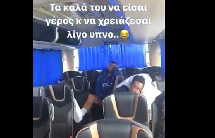 Ο «δαιμόνιος» φόργουορντ έμεινε ξύπνιος και κατέγραψε τους διεθνείς που κοιμόντουσαν, λέγοντας αστειευόμενος: «Τα καλά του να είσαι γέρος και να χρειάζεσαι λίγο ύπνο».