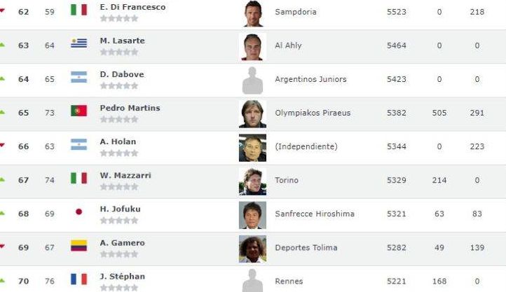 Ο κόουτς των Πειραιωτών διαρκώς ανεβαίνει στην παγκόσμια κατάταξη με τους κορυφαίους προπονητές. Πλέον είναι στην 65η θέση μετά την πρόκριση του Ολυμπιακού επί της Κρασνοντάρ και την παρουσία των Πειραιωτών στην φάση των ομίλων του Champions League. Αξίζει να θυμίσουμε πως ο Πέδρο Μαρτίνς ολοκλήρωσε την παρουσία του για το 2018 όντας 166ος.