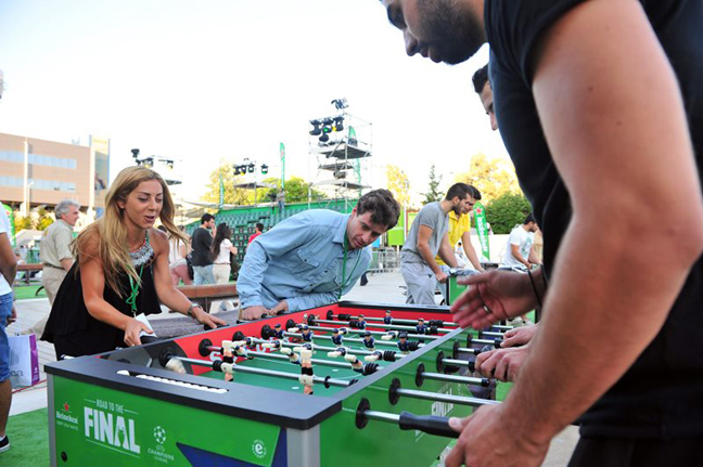Η εκδήλωση ξεκίνησε με πλήθος δραστηριοτήτων, όπως τουρνουά Pro Evolution, μονομαχίες στο ποδοσφαιράκι (foosball), διαγωνισμός για το καλύτερο shoot και πολλές ακόμα εκπλήξεις για τους παρευρισκόμενους, παρέα πάντα με παγωμένη Heineken. Στη συνέχεια, οι παρουσιαστές της εκδήλωσης, ο ηθοποιός Γιάννης Σαρακατσάνης και η δημοσιογράφος Μίνα Μπιράκου, ανέλαβαν να απογειώσουν τη διασκέδαση, δίνοντας το σύνθημα για πολλά περισσότερα δρώμενα με τη συμμετοχή του κόσμου. Η βραδιά κορυφώθηκε με την προβολή του μεγάλου τελικού, ο οποίος πήρε ξεχωριστή διάσταση χάρη στα εντυπωσιακά εφέ που χρησιμοποιήθηκαν σε κάθε κρίσιμη φάση του αγώνα, αλλά και στον live σχολιασμό των ειδικών που έδωσαν το «παρών»! Μεταξύ των θεατών που απόλαυσαν τον αγώνα από το «γήπεδο» που έστησε η Heineken στο Golden Hall ήταν Έλληνες θρύλοι του ποδοσφαίρου και γνωστοί ποδοσφαιρόφιλοι.