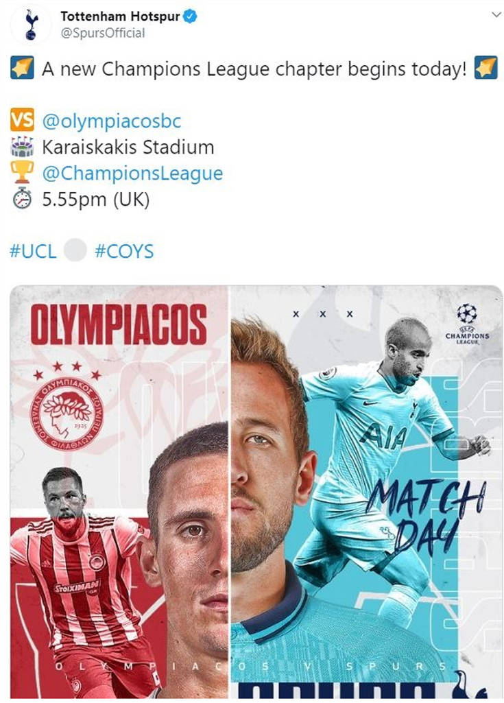 Πρεμιέρα στο Καραϊσκάκη, κόντρα στον Ολυμπιακό, κάνει απόψε στο Champions League 2019-20 η Τότεναμ, σε μια αναμέτρηση που μπορεί να αποδειχθεί κομβική για τους στόχους και των δύο ομάδων στη συνέχεια της διοργάνωσης.