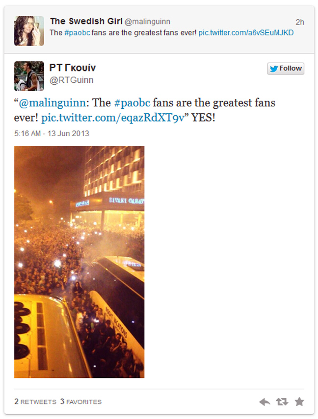 «Οι οπαδοί του Παναθηναϊκού είναι οι καλύτεροι.. ever. Ναι!», έγραψε απαντώντας στη σύζυγό του στο Twitter και βάζοντας μια φωτογραφία για… συνοδευτικό.