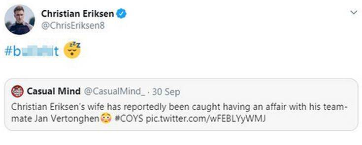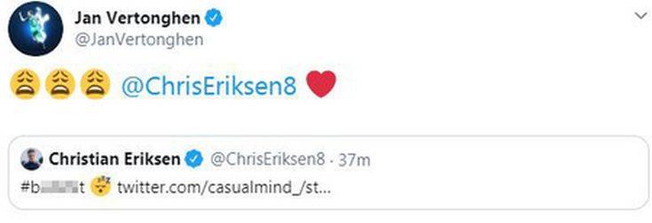 Ο Έρικσεν, έγραψε απλά «μαλ%5@%^#» στο twitter, βάζοντας και τη φήμη που κυκλοφόρησε και η οποία έχει πλέον εξαφανιστεί.