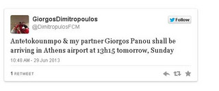 Το δρόμο της επιστροφής για την Αθήνα παίρνει σήμερα ο Γιάννης Αντετοκούνμπο. Μετά από δύο ονειρεμένες ημέρες, που ακολούθησαν την επιλογή του από τους Μπακς στο νούμερο «15» του ντραφτ, ο 18χρονος γκαρντ/φόργουορντ θα βρίσκεται το μεσημέρι της Κυριακής (13:15) στην Αθήνα, όπως έκανε γνωστό ο μάνατζέρ του.