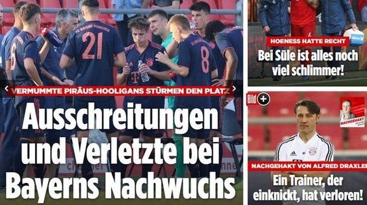 Τα όσα τραγικά έγιναν στο Ρέντη το απόγευμα στο παιχνίδι Νέων ανάμεσα σε Ολυμπιακό και Μπάγερν Μονάχου, κάνουν τον γύρο του κόσμου. Η γερμανική Bild, αναφέρθηκε σε όσα συνέβησαν τονίζοντας πως χούλιγκαν επιτέθηκαν σε φίλους της Μπάγερν με κάποιους από αυτούς να οδηγούνται στο νοσοκομείο.