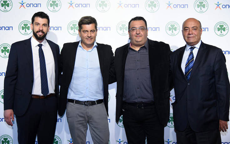 Στέφανος Αυγουλέας – Αντιπρόεδρος Παναθηναϊκού Α.Ο., Οδυσσέας Χριστοφόρου – Αναπληρωτής Διευθύνων Σύμβουλος ΟΠΑΠ, Γιάννης Ρόκκας – Διευθυντής Μάρκετινγκ Επικοινωνίας ΟΠΑΠ, Παναγιώτης Τριαντόπουλος – Αντιπρόεδρος & Διευθύνων Σύμβουλος DPG Group of Companies, Θανάσης Μπασδέκης – Υπεύθυνος Χορηγιών ΟΠΑΠ, Σταύρος Ντίνος – Γενικός Διευθυντής Παναθηναϊκού Α.Ο.