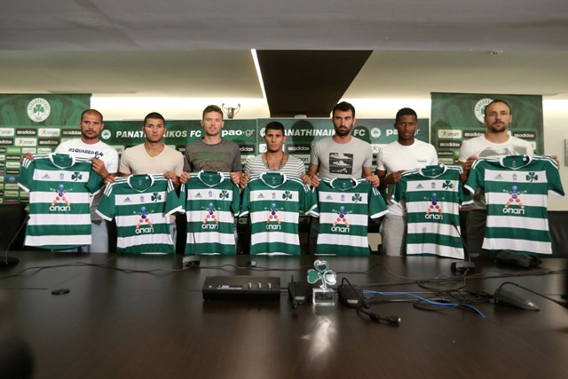Χαρούμενοι και αισιόδοξοι ενόψει της νέας σεζόν εμφανίστηκαν τα νέα μεταγραφικά αποκτήματα του Παναθηναϊκού (Μπεργκ, Νάνο, Κουτρουμπής, Αμπεΐντ, Σίντελφελντ και Καρέλης, Μέντες) κατά την επίσημη παρουσίασή τους από τους «πράσινους».
