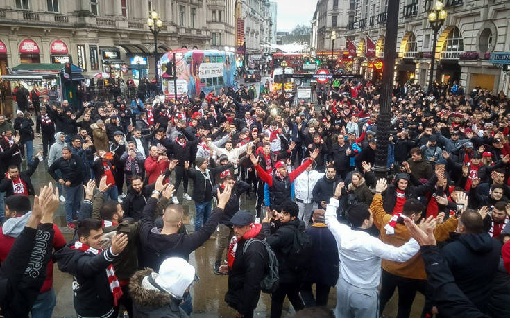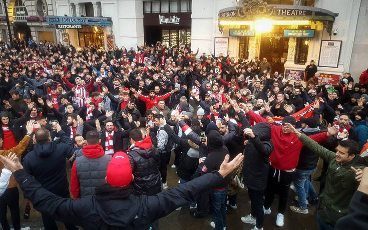 Οι ερυθρόλευκοι οπαδοί γέμισαν δρόμους και πλατείες του Λονδίνου και τραγούδησαν για την ομάδα τους, δίνοντας τον δικό τους τόνο πριν το ματς.