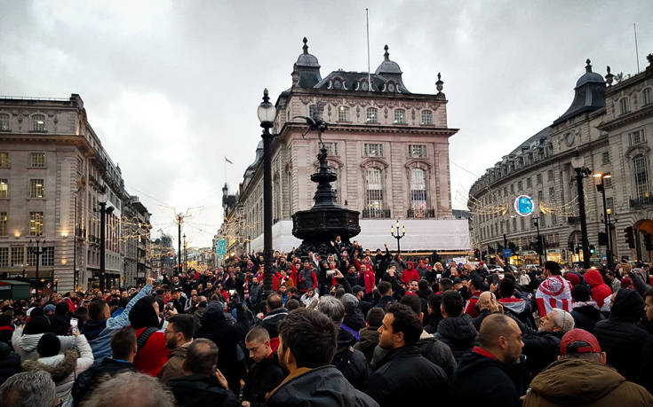 Το Λονδίνο βάφτηκε στα κόκκινα για τον αποψινό αγώνα του Ολυμπιακού κόντρα στην Τότεναμ στα πλαίσια της 5ης αγωνιστικής των ομίλων του Champions League.