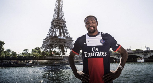 Στο Παρίσι βρίσκεται ο μπασκετμπολίστας των Οκλαχόμα Σίτι Θάντερ, Κέβιν Ντουράντ, όπου και φωτογραφήθηκε φορώντας τη φανέλα της Παρί Σεν Ζερμέν, με φόντο τον πύργο του Άιφελ.