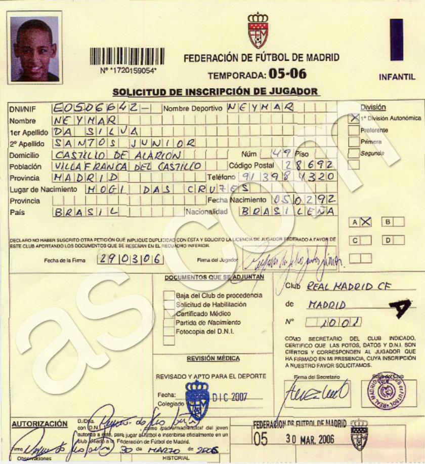 Ο σημερινός ισπανικός Τύπος αποκαλύπτει έγγραφο που αποδεικνύει ότι ο Βραζιλιάνος είχε δελτίο στην «βασίλισσα».