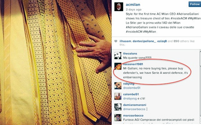 Η Μίλαν παραπαίει αγωνιστικά, προερχόταν από ήττα με 2-1 από τη Νάπολι στο «Σαν Σίρο» και το timing δεν ήταν το καλύτερο για να αναρτηθεί στη σελίδα της στο Instagram μία φωτογραφία με την προσωπική συλλογή κίτρινων γραβατών του αντιπροέδρου, Αντριάνο Γκαλιάνι.