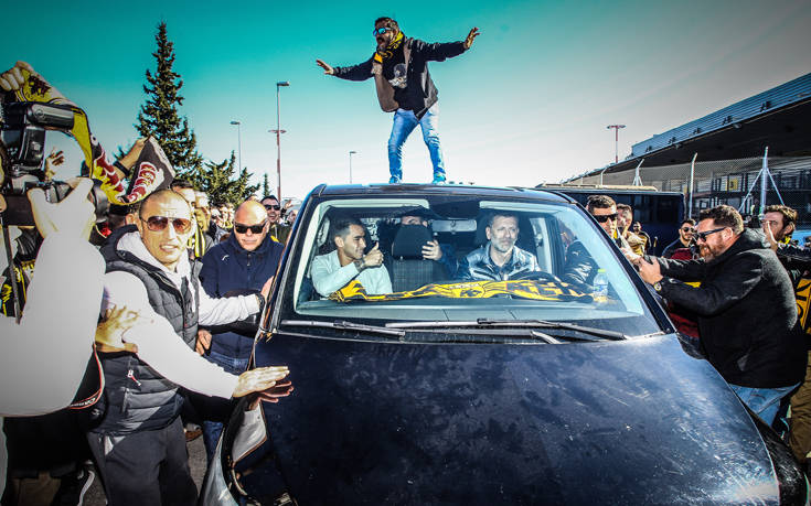 Λίγο πριν τις 14:00 ο Αραούχο έκανε την εμφάνισή του ενώπιον του κόσμου της ΑΕΚ που πήγε να εκφράσει τη χαρά του για το γεγονός ότι ο Αργεντινός επέστρεψε και η αποθέωση ήταν δεδομένη. Ο ίδιος ο ποδοσφαιριστής έβγαλε το κινητό του και απαθανάτιζε τις σκηνές.