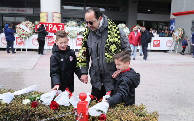 Το ποδοσφαιρικό τμήμα του Ολυμπιακού ήταν εκεί, μαζί με τον διοικητικό ηγέτη της «ερυθρόλευκης» ΠΑΕ, Βαγγέλη Μαρινάκη, ενώ μεταξύ άλλων παρόντες ήταν ο Παναγιώτης Αγγελόπουλος και ο δήμαρχος Πειραιά, Γιάννης Μώραλης.