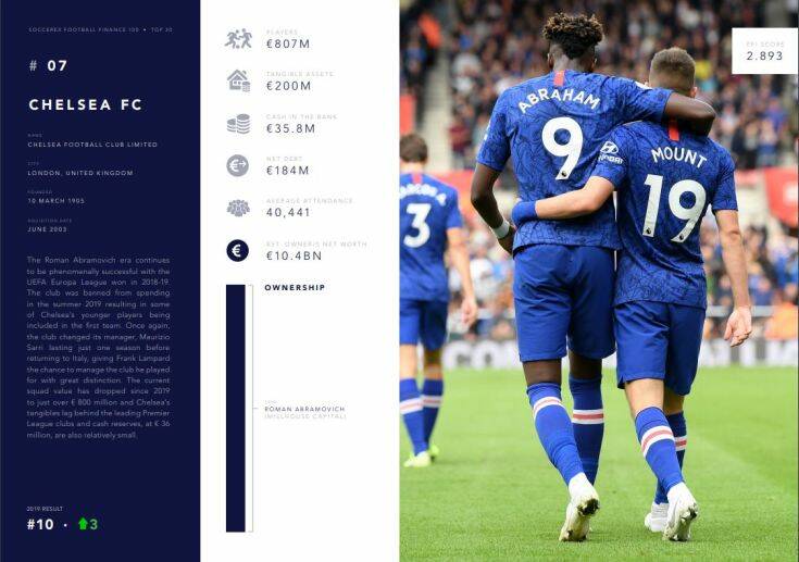 Η Τσέλσι φιγουράρει στην πρώτη δεκάδα (#7), ανεβαίνοντας τρεις θέσεις σε σύγκριση με την λίστα του 2019. Πάνω από την Λίβερπουλ και την Μάντσεστερ Γιουνάιτεντ, τα σημάδια φανερώνουν υγεία και ανοδική τάση για το άμεσο μέλλον.