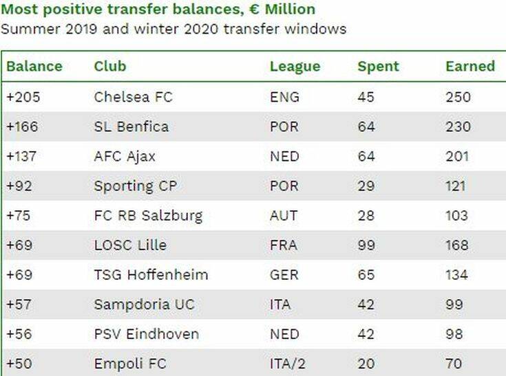 Από την στιγμή που το πλάνο Λάμπαρντ απέφερε με τον καιρό καρπούς και κράτησε την Τσέλσι στο στρώμα της τετράδας στην Premier, ήταν αυτονόητο ότι χωρίς την δυνατότητα να ξοδέψει πολλά για φτασμένα ονόματα, το ισοζύγιο θα είχε θετικό πρόσημο. Ωστόσο, το πλεόνασμα ξεπέρασε το ύψος των προσδοκιών και όλων των υπόλοιπων ομάδων στον κόσμο.