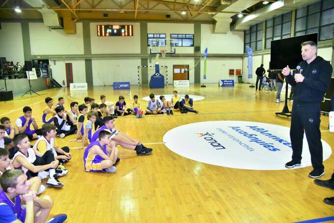 Ο Θοδωρής Παπαλουκάς, πρώην διεθνής καλαθοσφαιριστής, δίνει συμβουλές στα παιδιά των Αθλητικών Ακαδημιών ΟΠΑΠ