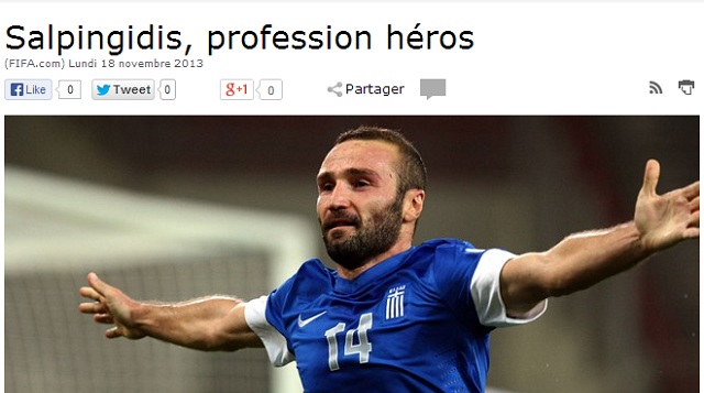 «Έχοντας πετύχει 13 γκολ σε 71 συμμετοχές σε οκτώ χρόνια, ίσως κάποιος θεωρεί πως ο 32χρονος Σαλπιγγίδης δεν θα αφήσει ανεξίτηλα τη σφραγίδα του στην ιστορία της Ελλάδας. Ωστόσο, στο στόμα κάθε Έλληνα, μία λέξη τον περιγράφει, ήρωας».
