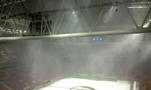 Μια διακοπή ενός ποδοσφαιρικού αγώνα είναι μέσα στο πρόγραμμα και συμβαίνει. Να είναι όμως το γήπεδο… πράσινο και μέσα σε λίγα λεπτά να γίνει… άσπρο, δεν το βλέπουμε και κάθε μέρα.
