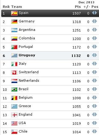 Στην κορυφαία βρίσκεται ξανά η Ισπανία, την οποία ακολουθούν η Γερμανία και η Αργεντινή, που βρίσκονται μπροστά από την Κολομβία, την Πορτογαλία και την Ουρουγουάη.