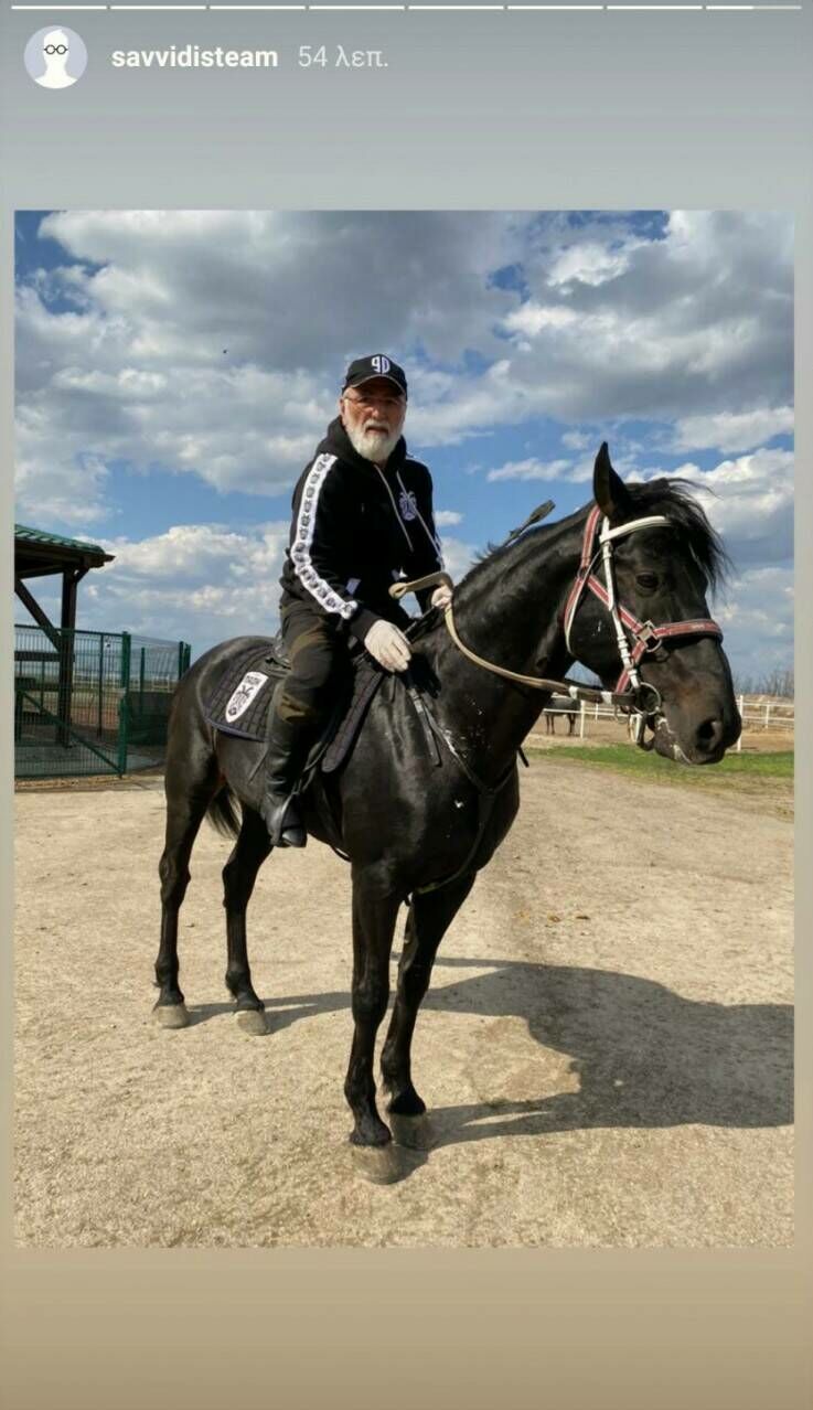 Στα χρώματα του ΠΑΟΚ έχει ντύσει το αγαπημένο του άλογο ο Ιβάν Σαββίδης, απολαμβάνοντας τις βόλτες του.