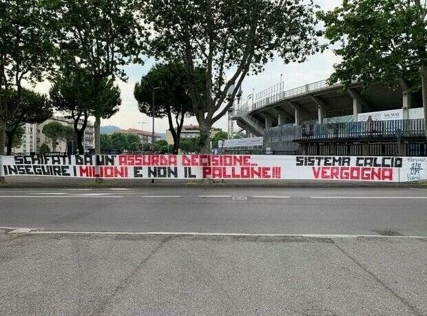 «Αηδιασμένοι από μία παράλογη απόφαση, παρακολουθείτε τα εκατομμύρια και όχι τη μπάλα. Ντροπή στο σύστημα του ποδοσφαίρου», ανέφερε το πανό που ύψωσε η Curva Nord της Αταλάντα έξω από το «Gewiss Stadium».