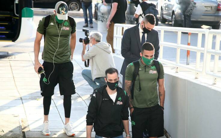 ΑΕΚ και Παναθηναϊκός κοντράρονται στην πρεμιέρα των πλέι οφ στο άδειο ΟΑΚΑ, λόγω κορονοϊού. Και λόγω του ιού βλέπουμε πλέον εικόνες που τις συνηθίζουμε, όπως αυτές των παικτών των δύο ομάδων με τις μάσκες κατά την άφιξη τους στο ΟΑΚΑ.
