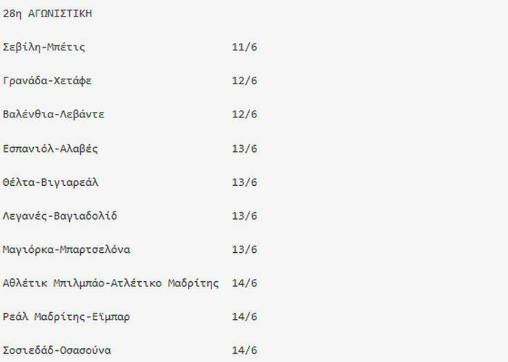 Το πρόγραμμα της 28ης και της 29ης αγωνιστικής του ισπανικού πρωταθλήματος: