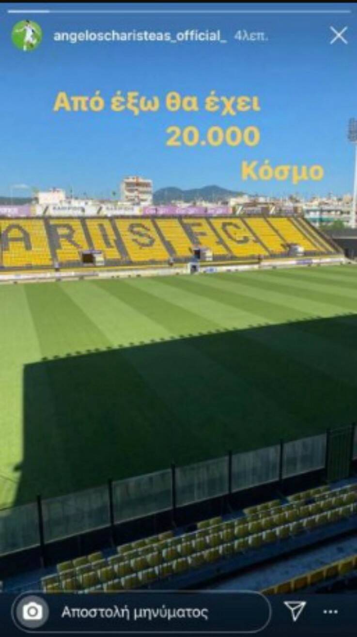 Το κάνει σαφές, άλλωστε, ο Άγγελος Χαριστέας, ο οποίος αναφορικά με το Άρης-ΑΕΚ, πόσταρε ένα story στο Instagram με τις άδειες εξέδρες του «Κλεάνθης Βικελίδης» και έγραψε: «Από έξω θα έχει 20.000 κόσμο».
