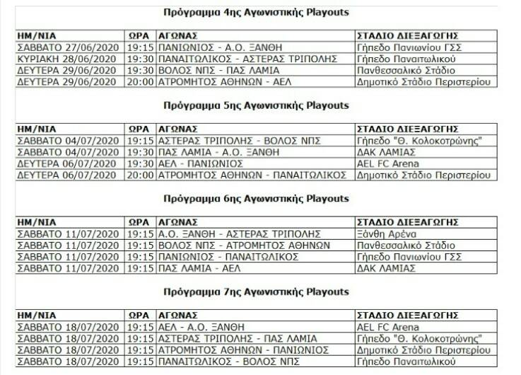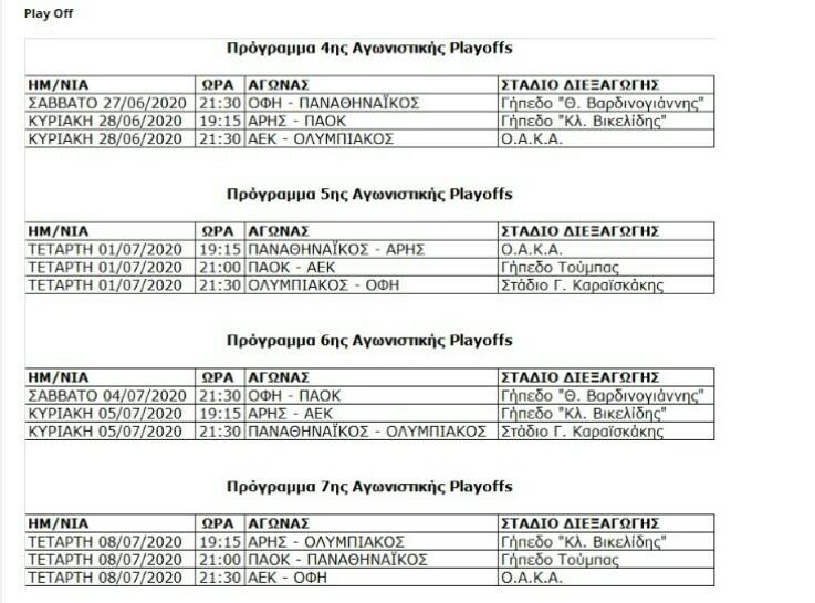Παράλληλα, έγινε γνωστό και το πρόγραμμα για τη συνέχεια των πλέι άουτ, το οποίο θα ολοκληρωθεί στις 18 Ιουλίου.